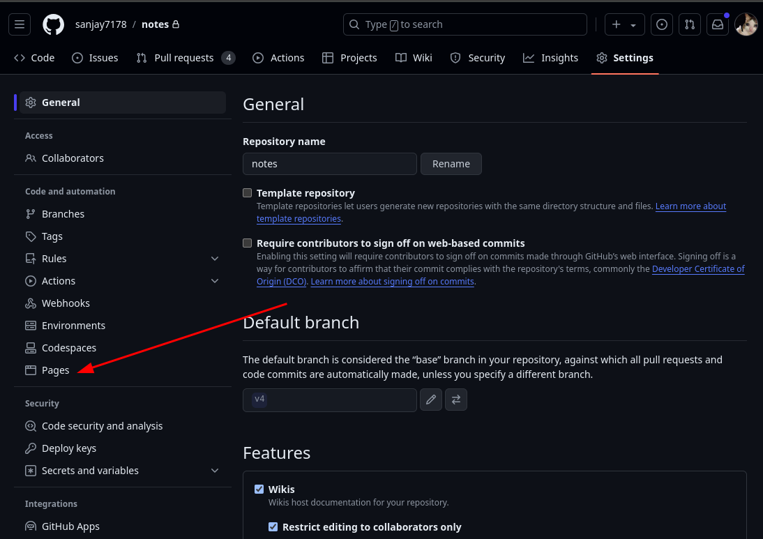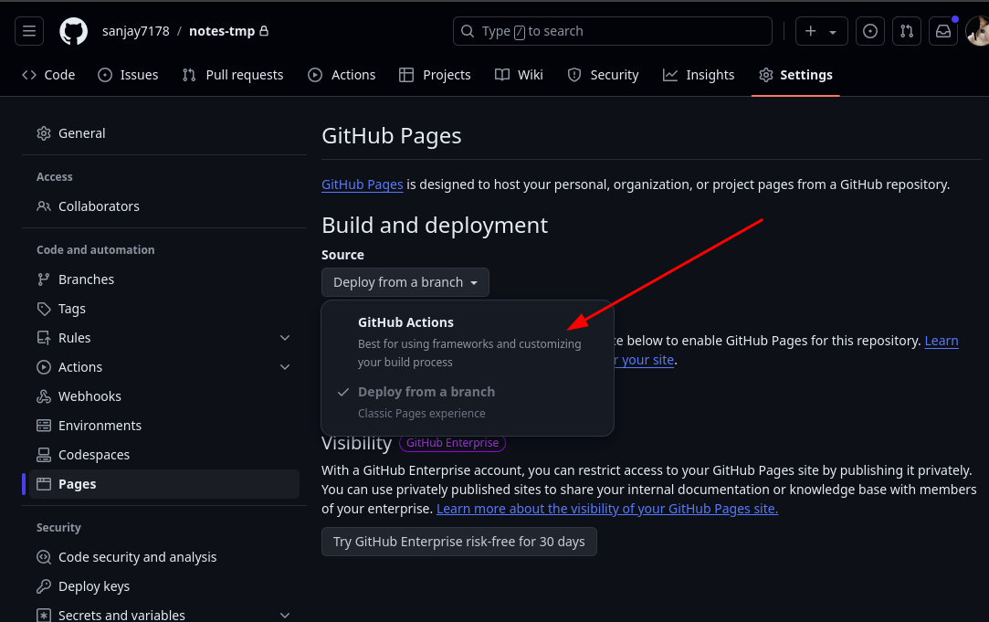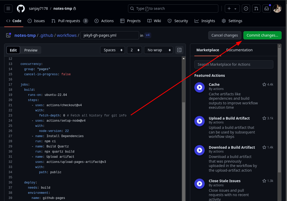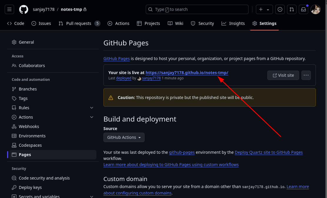 uses: actions/deploy-pages@v4ref :https://quartz.jzhao.xyz/hosting#github-pages