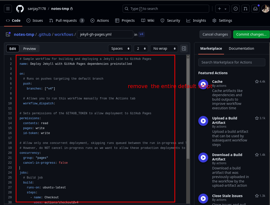 after setting up the npm i go to your github repository root directory in my case it was notes